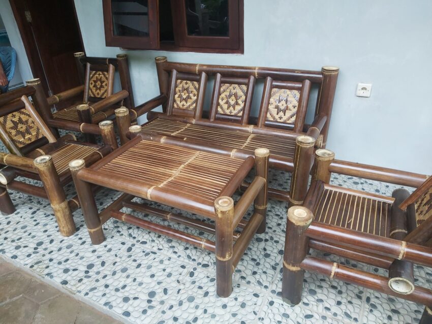 Kursibambu anyaman Posted on February 15, 2025 Kami melayani berbagai macam pemesanan mebel bambu .kursi bambu.anyaman bambu.dipan bambu Gazebo bambu